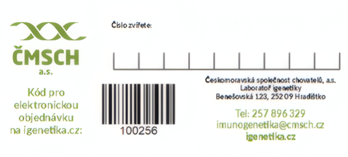 Součástí odběrového setu je také sáček s etiketou k uvedení ušního čísla daného zvířete.